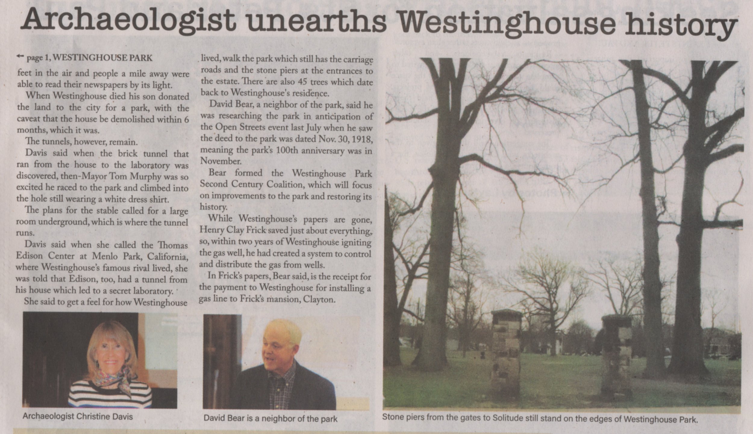 History Happens Here UncategorizedWestinghouse ParkWestinghouse Park: History Apr 12 Written By David Bear Thanks for the coverage to the kind people at Print - Pittsburgh's East End Newspaper. This article chronicled the earliest efforts of the WP2CC to bring new perspective to Westinghouse Park. print d 1 print c Media Type - ArticleWestinghouse Park David Bear