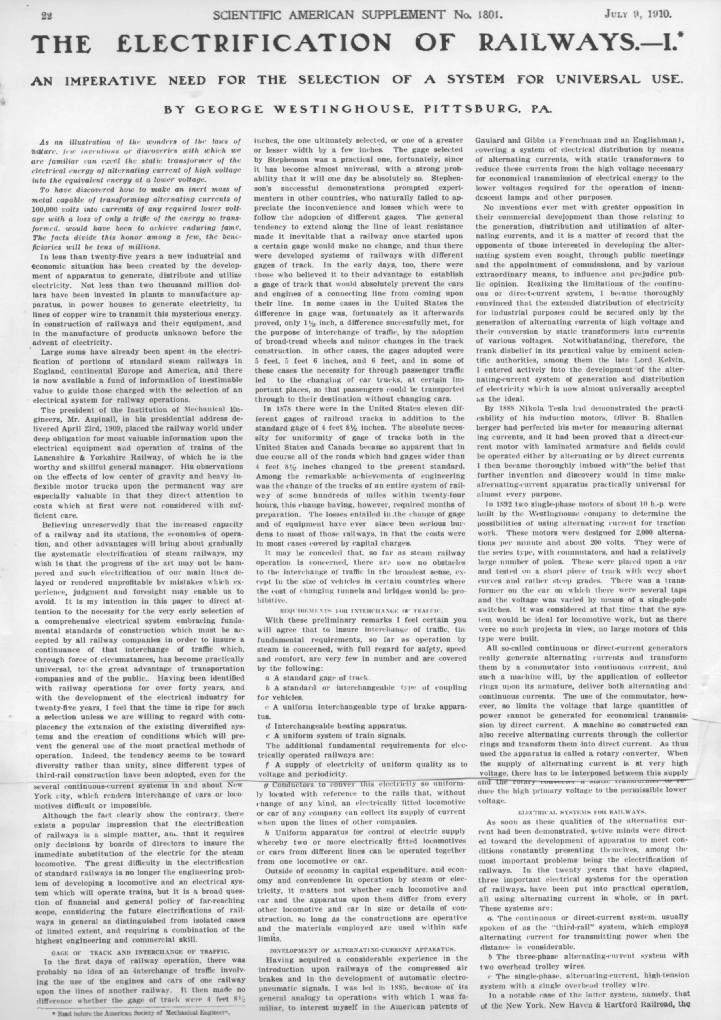 In his own words, George Westinghouse analyzes the problem and makes a compelling case for adopting a common set of standards for the electrification of railroads across North America.