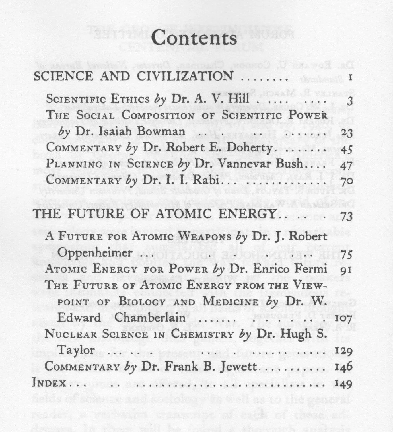 Titled Science and Life in the World, The Future of Atomic Energy, the three-day event brought together dozens of distinguished scientists for a symposium to discuss the topic, less than a year after World War II was ended with atomic bombs.