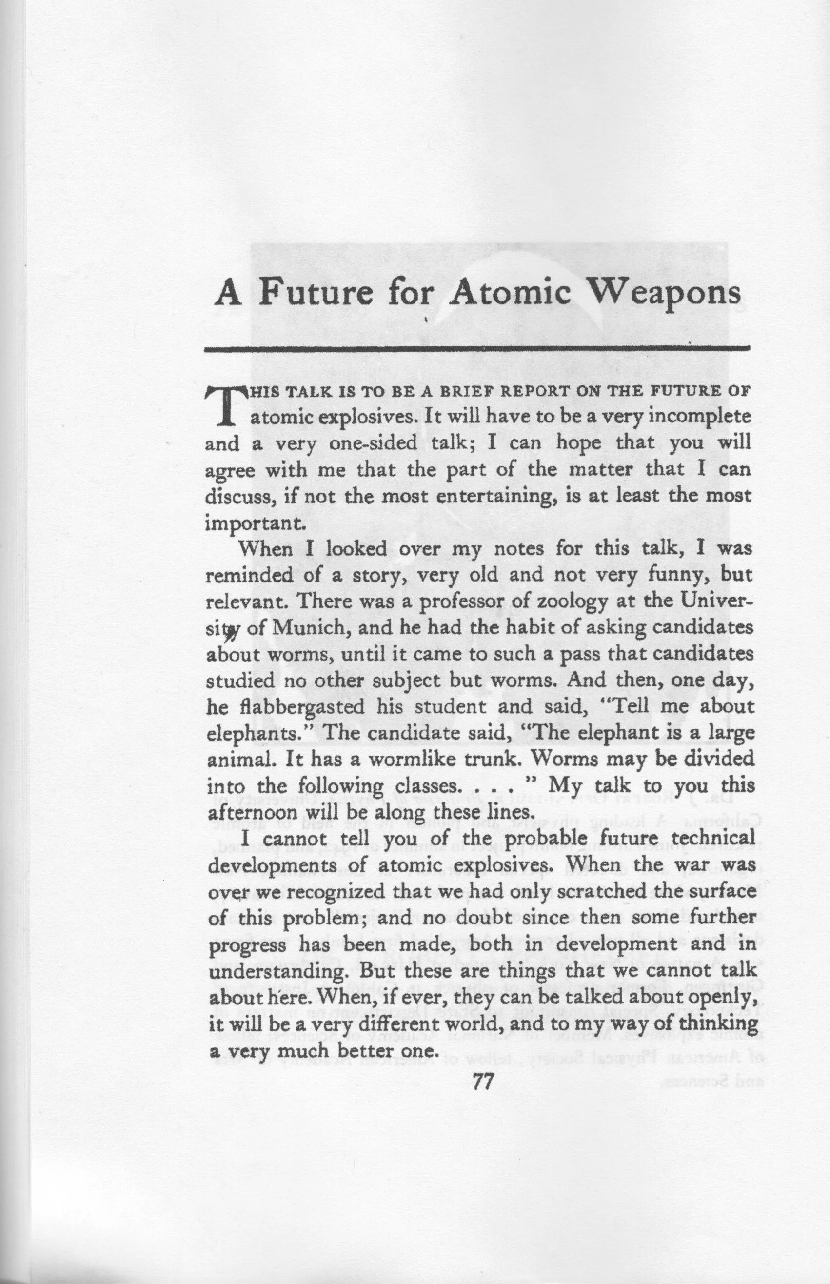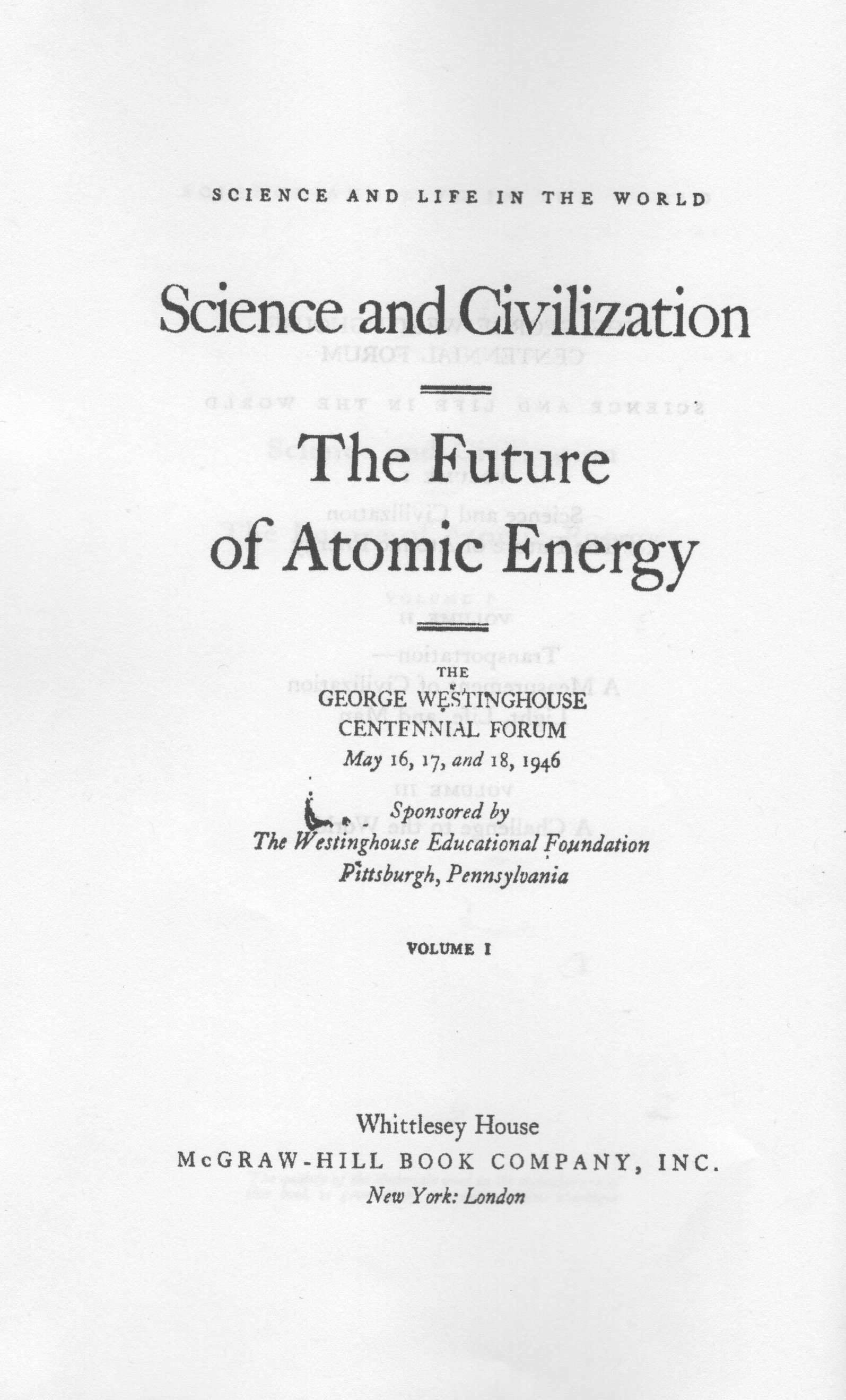 The remarks of ten speakers at the forum, including J. Robert Oppenheimer and Enrico Fermi, were gathered together into a book that was published by McGraw-Hill.