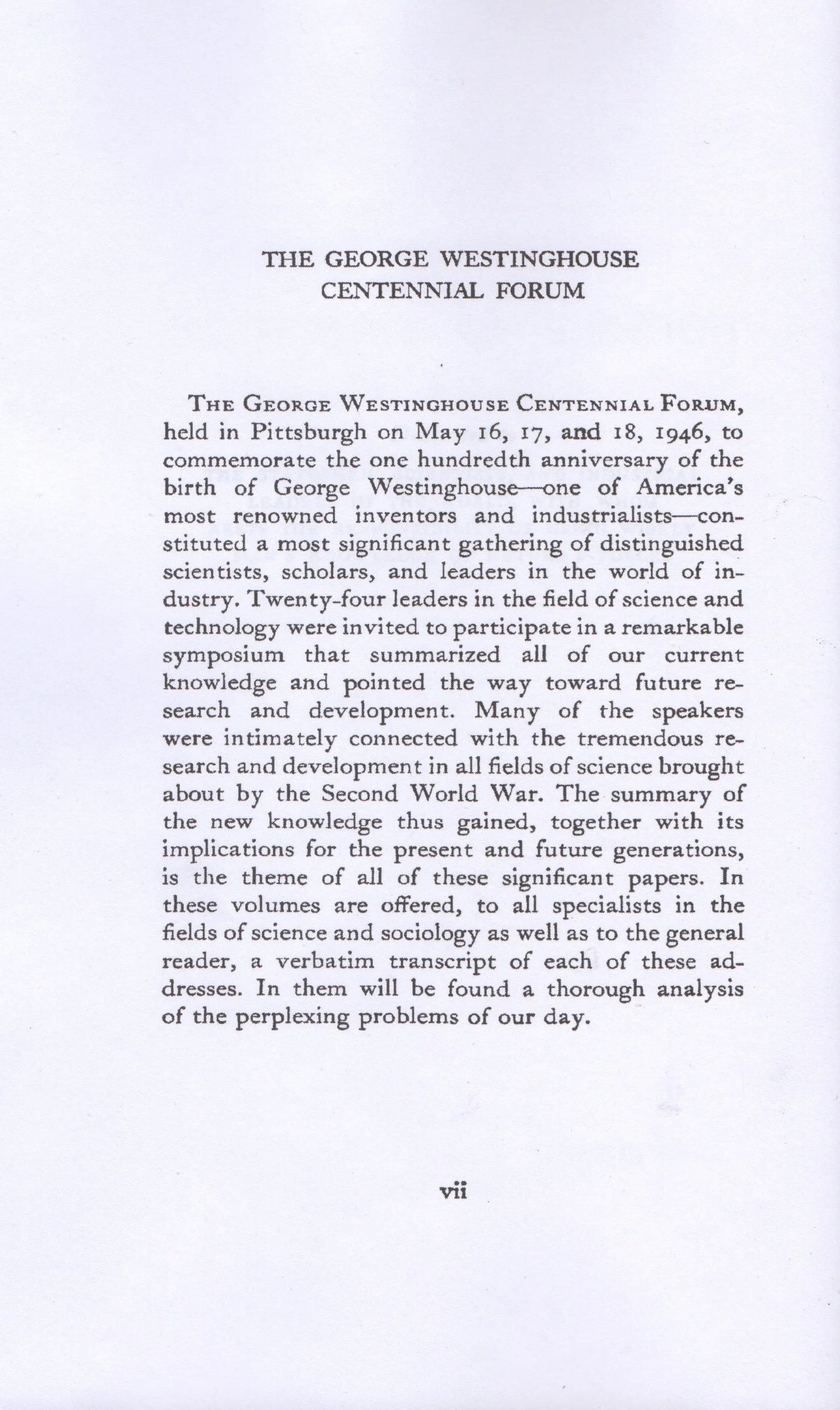 In 1946 to commemorate the centennial of George Westinghouse’s birth, the Westinghouse Educational Foundation organized a forum in Pittsburgh.